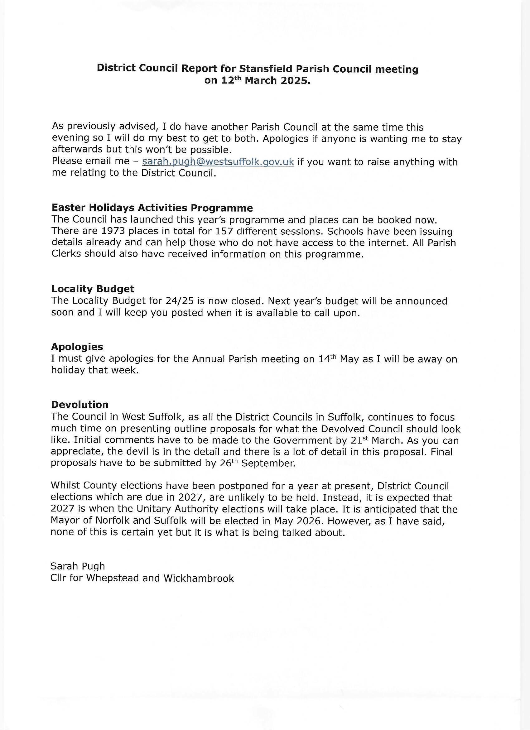 Home » Contacting Us » Contacting the Parish Council » District Councillor » Reports from Sarah Pugh