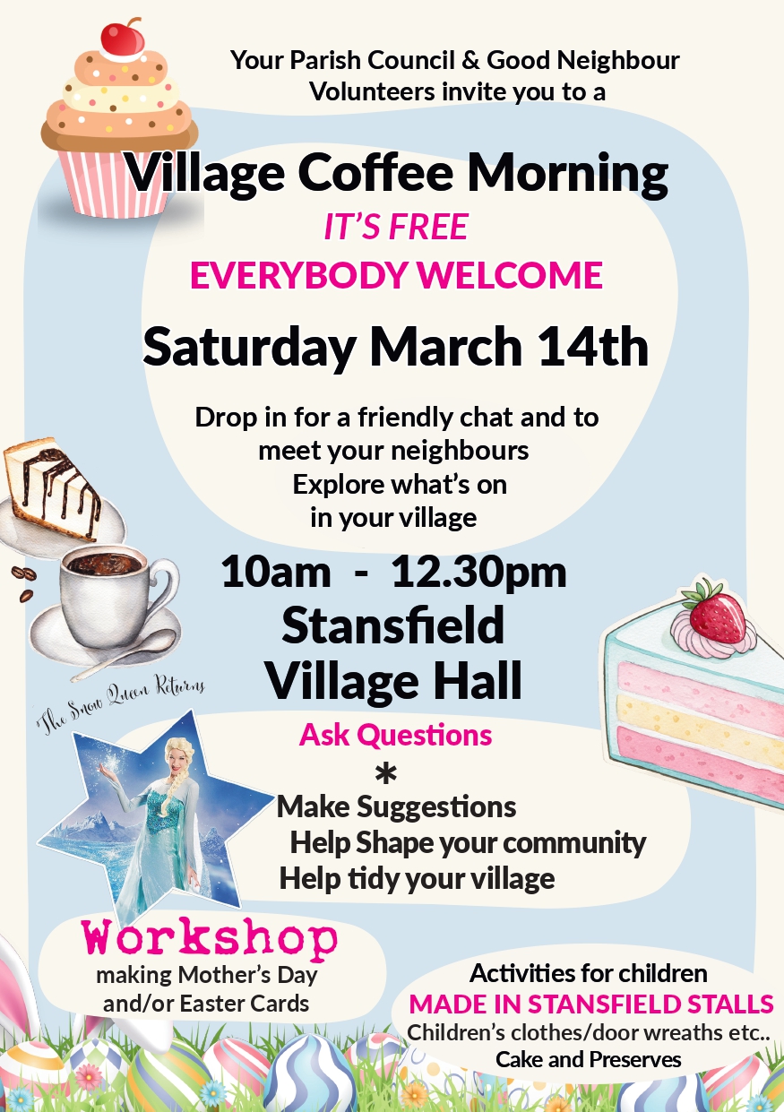 Please join us this April for our Spring Coffee Morning and Village Tidy-up.